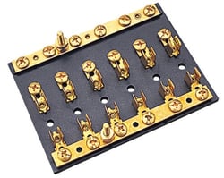 The Sea-Dog Line 420546-1 is a combination 6-gang AGC fuse and terminal block designed for reliable marine electrical distribution. Constructed with durable bakelite housing and brass fuse clips and screws for corrosion resistance in harsh marine environments.