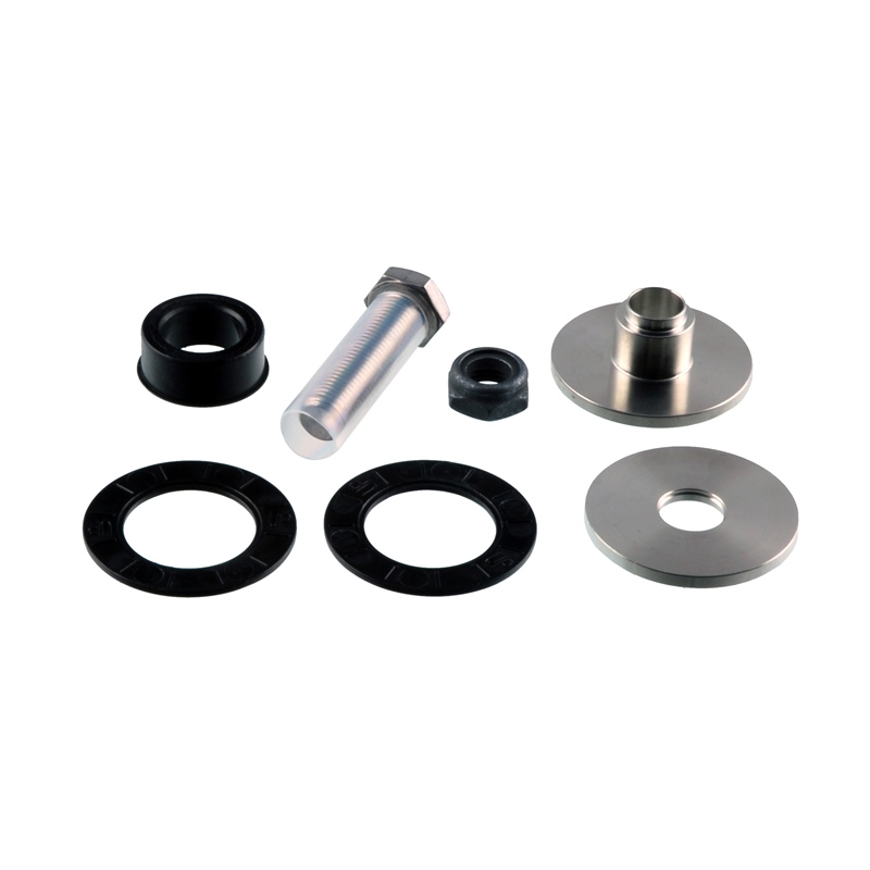 The Seastar Solutions HA5820 is a complete tiller bushing kit designed for hydraulic steering cylinder installations on marine outboard motors. This essential hardware kit includes the tiller plate washer, bushing, bolt, and nut required to properly connect the hydraulic steering cylinder to the outboard motor tiller arm.
