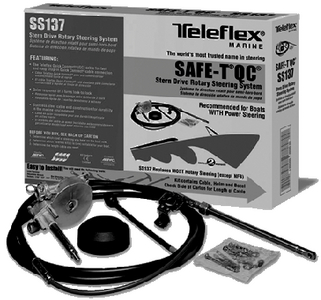 The Seastar Solutions SS13719 Safe-T Quick Connect rotary steering system is designed for single-station power-assisted sterndrive and inboard boats up to 24 feet. This complete steering kit delivers responsive handling with its quick three-turn lock-to-lock ratio and simplified installation through the patented Quick Connect cable system that requires no special tools.