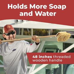 6" hard wood block polypropylene bristle brush is mounted on a 48" threaded wood handle.