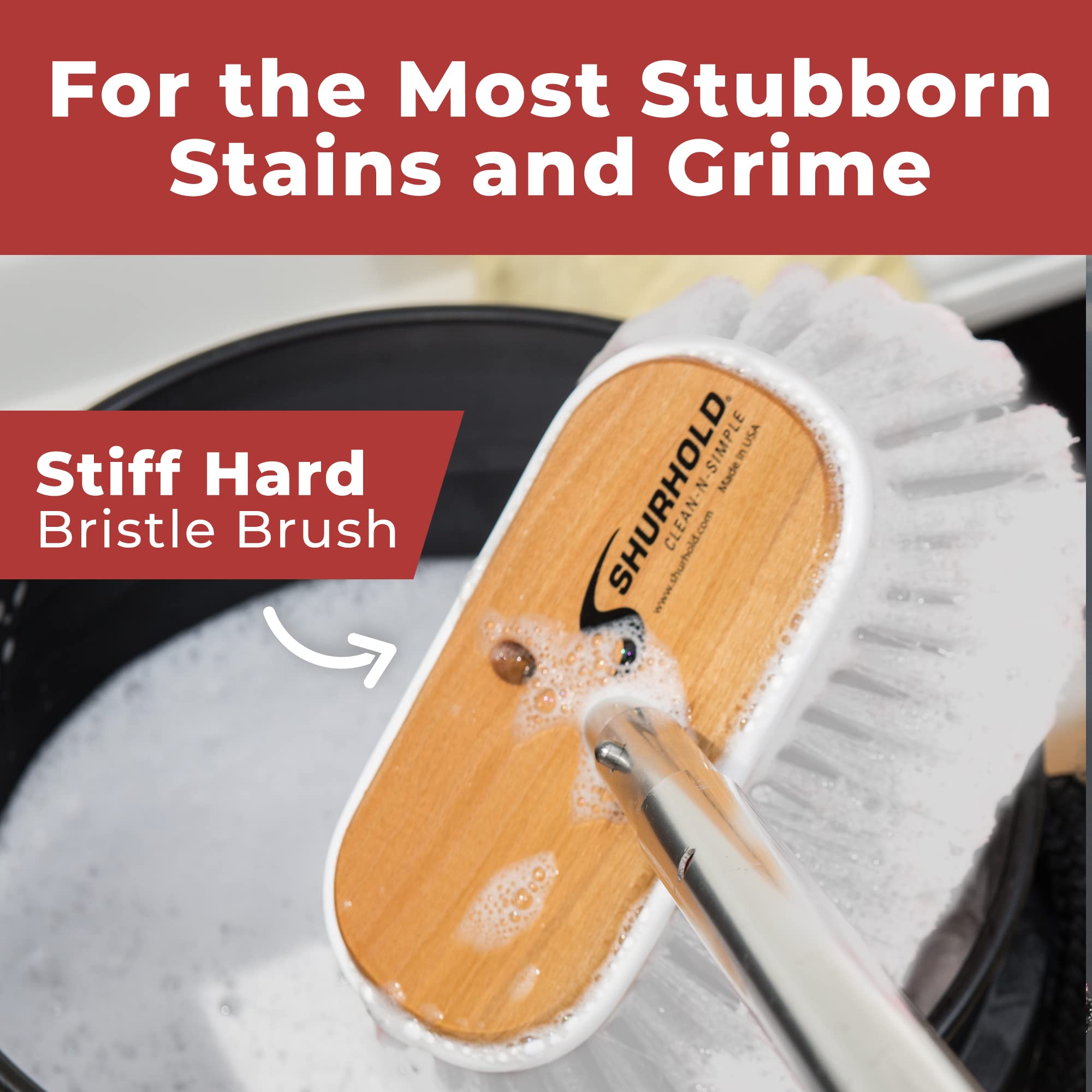 The Shurhold 950 medium deck brush is designed for efficient cleaning of boat decks, docks, and other marine surfaces. This professional-grade brush features flared bristles that provide excellent scrubbing action while the angled head design allows you to reach into corners and along edges with ease.