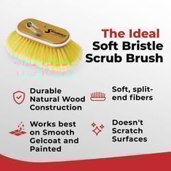 This brush head is part of Shurhold's modular cleaning system, allowing you to swap between different brush types and tools using the same handle. The medium stiffness bristles are ideal for general deck cleaning tasks on fiberglass, painted surfaces, and textured non-skid areas. Handles sold separately.