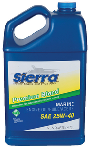 Sierra 25W-40 Four Cycle Inboard/Outboard Engine Oil is specifically formulated to provide excellent lubrication and corrosion protection in the harsh marine environment. This premium marine engine oil outperforms standard automotive oils with superior detergency, anti-oxidants, anti-wear additives, and corrosion protection.