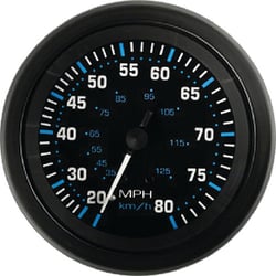 The Sierra 68396P Eclipse Speedometer Kit delivers accurate speed monitoring for marine applications with a range of 0-65 MPH. Featuring smart white and blue graphics on a black dial background, this speedometer combines modern styling with exceptional functionality for outboard and stern drive installations.