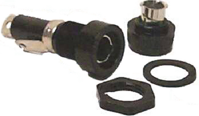 Sierra FS45430 Panel Mount Single Fuse Holder. For 1/4" X 1-1/4" Glass Tube Fuses. Bayonet-Type Knob Spring Pressure Contact And Vibration Resistant. For Panels Up To 5/16" Thick. Comes With Gasket And Back Nut, Less Fuse.