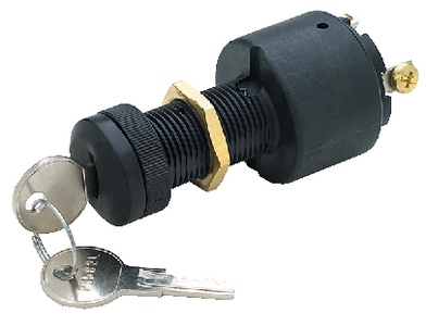 This universal marine ignition switch is ideal for boats, personal watercraft, and other marine applications requiring a reliable key-operated starter switch. The polyester construction ensures long service life even in corrosive saltwater conditions. Does not include push-to-choke functionality.