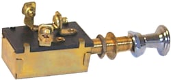 The Sierra MP39580 is a heavy-duty marine-grade push pull switch featuring On/Off/On functionality with SPDT (Single Pole Double Throw) configuration. This robust switch is built with solid brass construction and stainless steel springs for superior corrosion resistance and long-lasting performance in harsh marine environments.