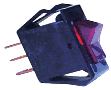 The Sierra RK19630 is a compact illuminated rocker switch designed for marine and automotive electrical applications. This narrow-body switch features blade terminals for secure wire connections and fits standard panel cutouts measuring 0.550 x 1.15 inches.