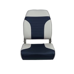 The Springfield Marine 1040661 Economy Folding High Back Seat provides comfortable, cushioned seating support for your boat. This affordable folding seat features durable marine-grade upholstery in gray and blue that stands up to sun, salt, and moisture.