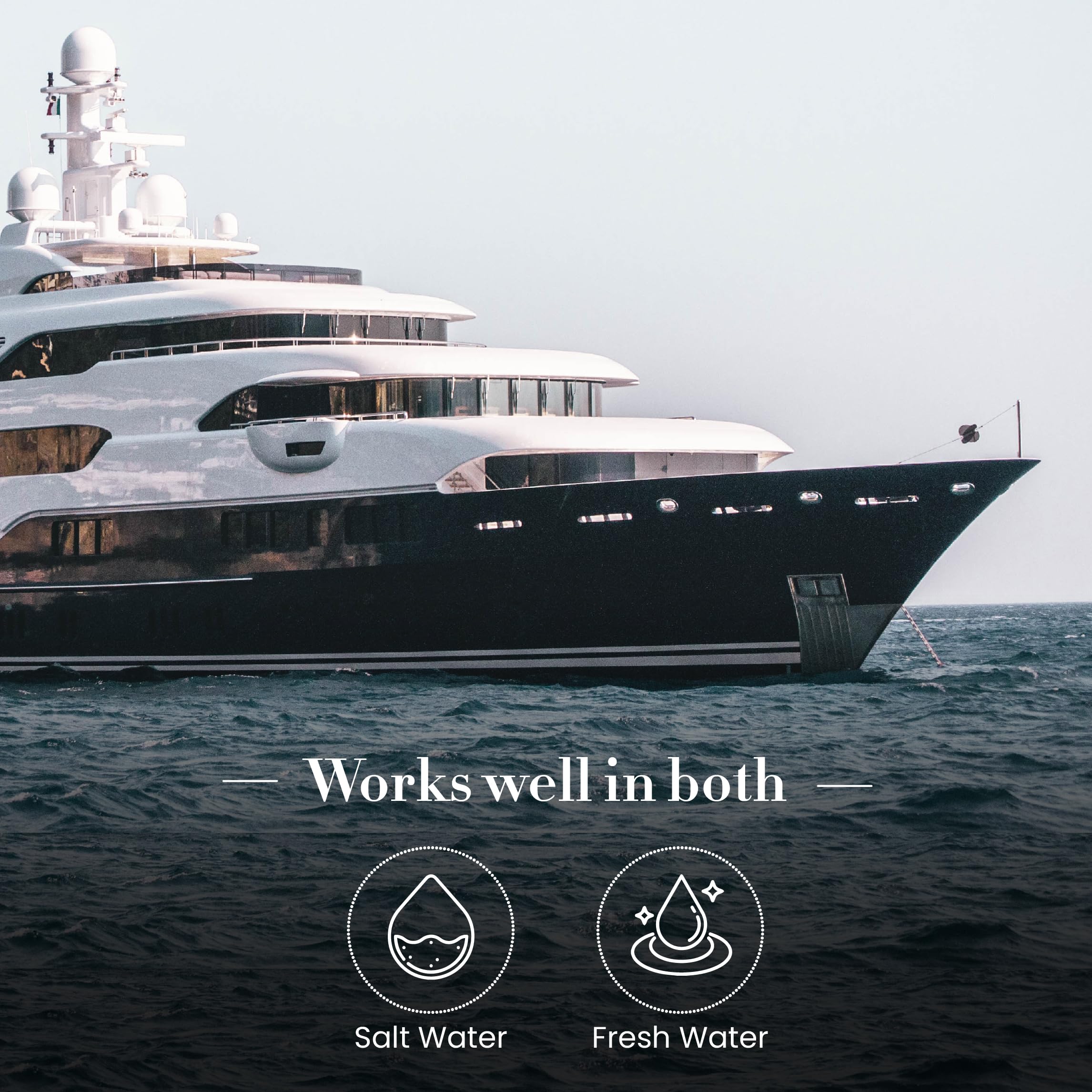 • Non-caustic formula safe for all marine surfaces including fiberglass, gel coat, and vinyl