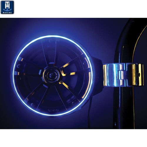 The T-H Marine LED-SMSKR-B-DP is a 6-1/2" LED accent ring designed to add vibrant blue lighting to your marine audio system. This innovative accessory transforms ordinary boat speakers into eye-catching entertainment focal points with built-in LED illumination.