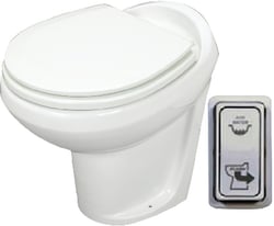 The Thetford Tecma EasyFit ECO electric marine head combines stylish contemporary design with powerful performance for boat installations. Utilizing Turbine Technology, this toilet produces a powerful, clog-resistant flush with remarkably low water consumption—just one pint per flush. The system features 6 feet of vertical lift for flexible installation, making it ideal for various marine applications.
