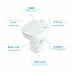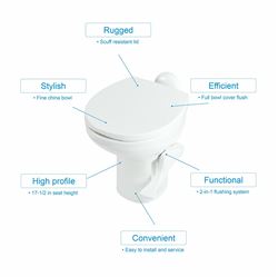 Perfect for RV owners seeking the comfort and performance of a residential-style toilet in a lightweight, space-efficient design.