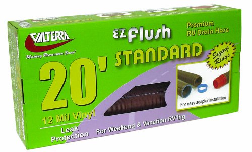 The Valterra D04-0016 EZ Flush is a 20-foot standard RV sewer drain hose featuring premium construction for superior waste management. This bronze-colored hose is engineered with 30% more coils than conventional drain hoses, creating a smoother interior surface that significantly reduces waste hangups and ensures more efficient drainage.