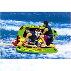 The innovative Flex-Wing system allows riders to steer by themselves or as a team, flying back and forth over the wake while the boat driver stays straight. You can kneel, sit, stand, or lay on this deck tube, and even do barrel rolls with no fragile fins or fancy tow points necessary.