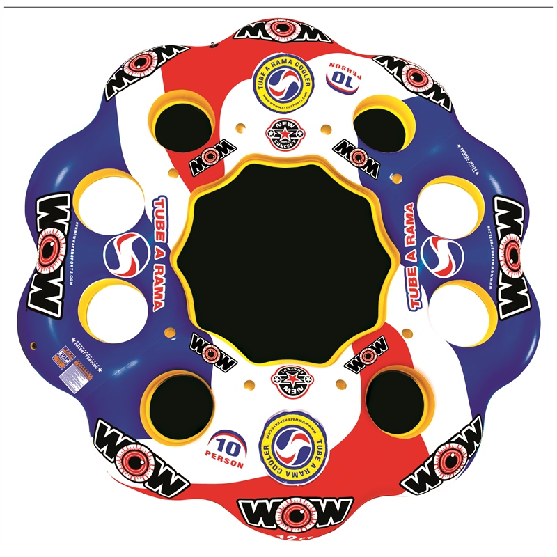 The Wow Sports Tube A Rama is a massive 12-foot diameter inflatable floating island designed for ultimate relaxation and entertainment on the water. This impressive party float accommodates up to 10 people, making it perfect for gatherings at the lake, pool, or river.