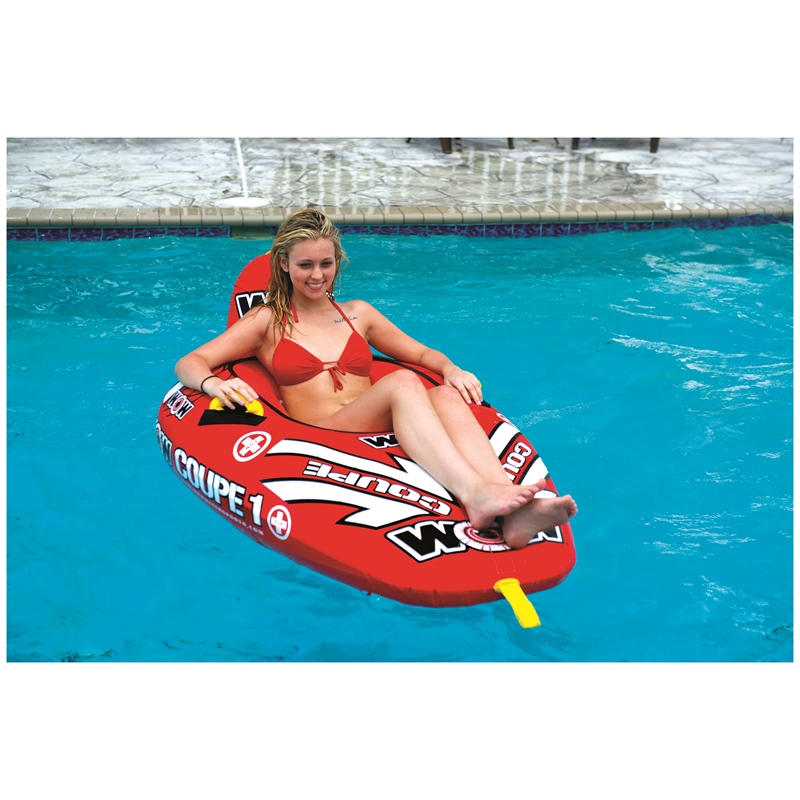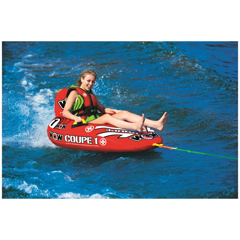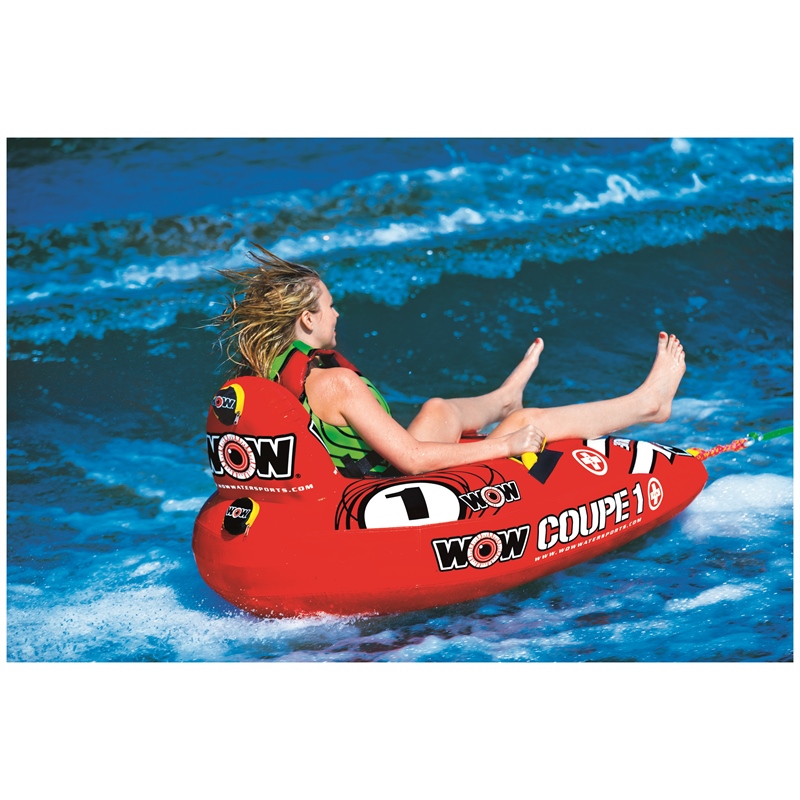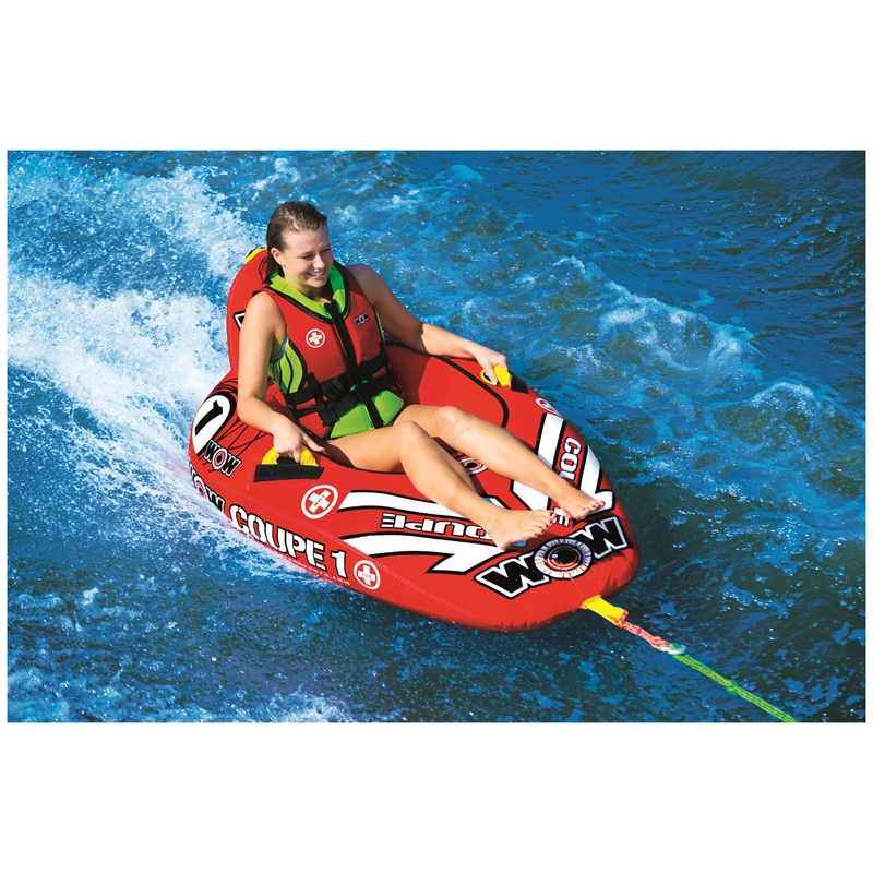 The WOW Sports Coupe Cockpit towable tube reimagines the classic cockpit design with innovative features that enhance performance and versatility. By removing traditional seat dividers and incorporating a drop-bottom design, this single-rider tube delivers exceptional speed, balance, and fuel-efficient towing across the wake.