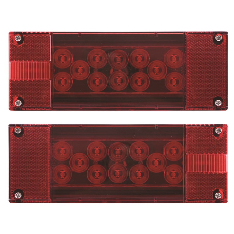 The Optronics STL-17RS is a waterproof, low-profile LED trailer tail light designed for reliable performance in demanding applications. This submersible light features 8 distinct functions including stop, turn, tail, side marker, side reflex, backup, and license plate illumination, providing comprehensive lighting coverage for trailers under 80 inches wide.