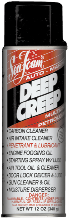 Sea Foam Deep Creep is a premium petroleum-based penetrating lubricant designed for automotive, marine, powersports, and household applications. This versatile aerosol formula cleans, penetrates, lubricates, and dries without leaving harmful residues.