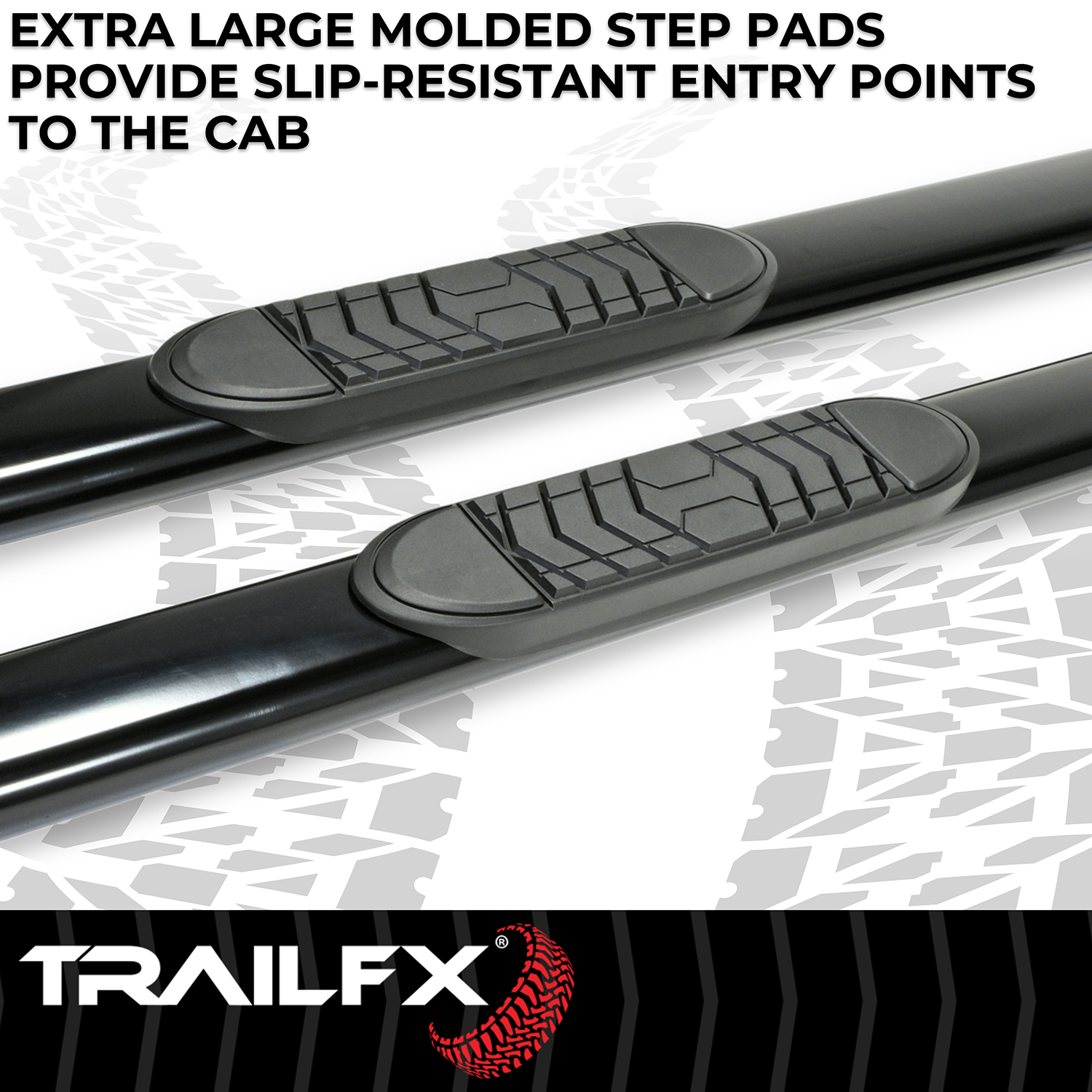 This step bar combines TrailFX's commitment to quality construction with practical functionality, giving you improved accessibility while protecting your rocker panels from road debris and minor impacts. The traditional oval profile offers a classic appearance that complements a wide range of truck and SUV models.