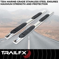 The TrailFX A7052S 5-inch oval side steps provide a perfect blend of functionality and style for your truck or SUV. These rocker panel mount steps feature polished stainless steel construction that delivers both durability and an eye-catching chrome finish that enhances your vehicle's appearance.