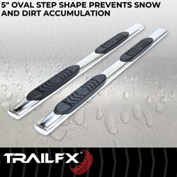 TrailFX nerf bars combine style, safety, and functionality to enhance your truck or SUV. The polished stainless steel finish adds a premium look while the extra-large step pads provide slip-resistant entry points to your vehicle's cab in any weather condition.