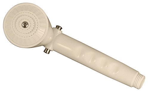 The Valterra PF276019 is a versatile hand-held shower head designed for both interior and exterior RV shower applications. This classic-style showerhead features a durable plastic construction in an attractive biscuit (off-white) finish that coordinates with many RV bathroom fixtures.